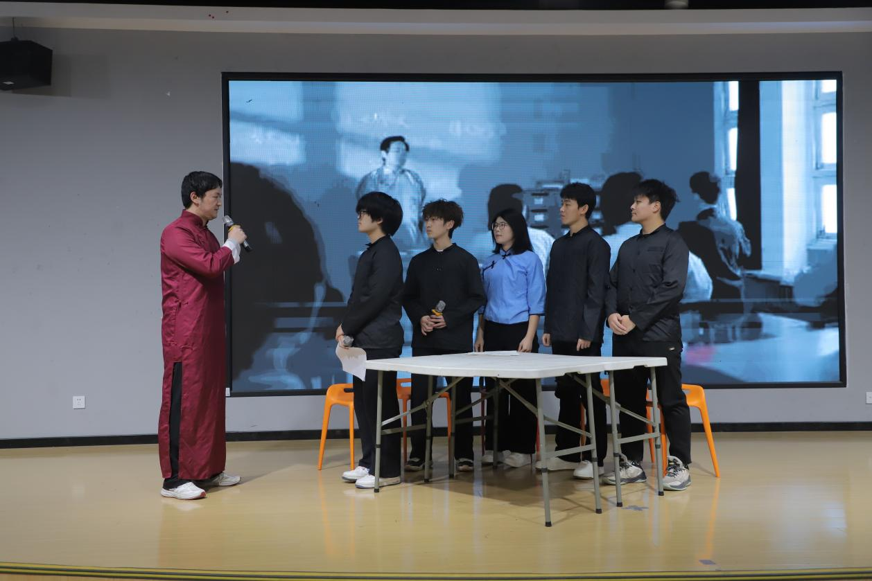 现场课紧扣红色基因传承、钢铁报国使命主线,设置了“山河铭志,薪火长明”“钢铁意志,笃行致远”“韶华筑梦,矢志前行”三个篇章。主讲老师从“叩响历史,青春如何担当?”开篇的时代追问,逐步递进至“钢铁青年如何践行报国之志?”的使命叩问,通过层层深入地提问引发学生思考。来自各学院的八支展演团队依次登台,以《山河泣血时,青春赴国难》《青春星火,点亮时代》等剧目演绎的形式,展现了烽火岁月里的青春抉择与和平年代中的使命坚守。创编过程中,师生们查阅史料、打磨细节,从剧本构思到舞台呈现,在角色中感悟革命先辈的家国情怀,在演绎中深化对红色精神的理解,让“演”与“悟”、“看”与“思”深度融合。