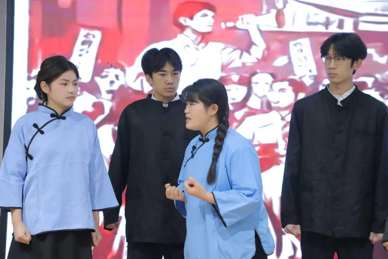 12月19日“青春献礼新时代”红色情景剧展演圆满落幕,为学校第二十四届科技文化节画上了圆满句号。此次活动由300余名师生全程参与剧本创编、排练和展演,从史料挖掘到剧本创编,从角色揣摩到舞台呈现,师生通过“教师讲授+情景演绎+现场互动”的形式,将思政教育与文艺表达融合,打造了一堂沉浸式、体验式的现场思政课。