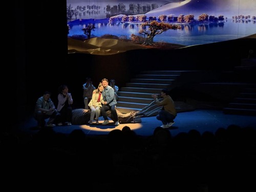 《大漠日记》以保定学院西部支教群体为原型,采用抒情话剧的表现形式将他们在新疆的奋斗历程艺术地呈现在舞台上,传递了他们在困境中坚守理想、在奉献中实现价值的信念,展现了新时代燕赵青年“好儿女志在四方,有志者奋斗无悔”的家国情怀。“我透过布满银光的小窗,悄悄地向远方凝望,是什么牵动我的思绪,风沙中一丛丛红柳、一棵棵胡杨……”当剧中孩子们和支教教师共同唱响这首深情的歌时,许多同学红了眼眶。演出结束后,全场爆发出雷鸣般的掌声。参与观演的学生表示,这部剧为“我青春的意义”找到了答案,深受教育和启发。
