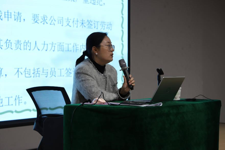 本次讲座特邀请石家庄市劳动人事争议仲裁院副院长南敏女士主讲。南敏院长拥有十三年一线办案经验,对职场法律纠纷与劳动者权益保护有着深刻且全面的认知。讲座中,她以大学生未来职场可能面临的高频法律问题为切入点,系统梳理劳动仲裁申请条件、受理流程、裁决执行等核心要点;围绕劳动关系认定的核心标准、劳动合同签订的必备条款、薪酬支付的法定规范、社保缴纳的强制要求等关键内容,结合多起贴近学生实习、就业场景的典型案例展开细致解读。针对“实习期间受伤是否算工伤”“未签订劳动合同如何主张二倍工资差额”等学生高度关切的问题,南敏院长用通俗直白的语言将复杂法律条文转化为可理解、可操作的维权指南,详细拆解权益主张的具体路径、举证要点与实操方法,让在场学生清晰掌握维权的流程与关键节点。