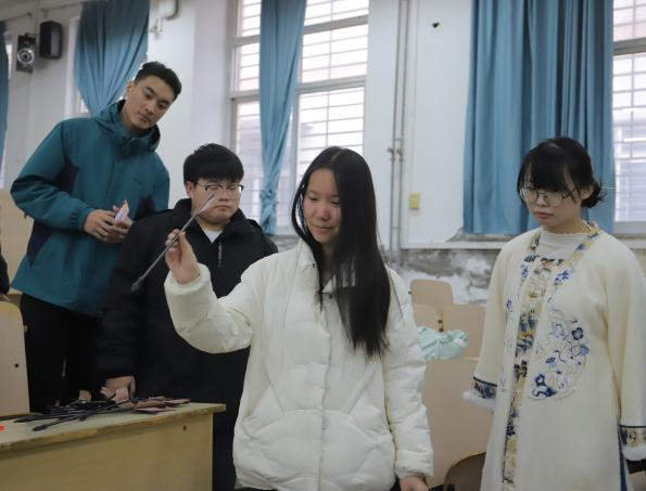 活动现场设有雅韵投壶、簪花配韵、礼仪问安三大关卡,由身着汉服的工作人员全程引导。参与者凭报名凭证签到领取打卡券后,依次参与各项挑战,在投壶环节体验古人雅趣,通过簪花环节了解传统妆饰美学,并在礼仪问安环节学习拱手、欠身等传统礼节。每成功通过一关,即可获得专属印章,集齐后可兑换汉服主题纪念品。活动中,同学们展现出对汉服文化的浓厚兴趣,积极参与各项挑战。轻松有趣的环节设计不仅让大家释放了青春活力,也激发了大家主动了解汉服形制、纹样寓意等传统文化知识的热情,现场互动积极、气氛热烈,生动展现了中华优秀传统文化的独特魅力。