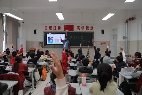 活动中,宣讲团成员生动讲述了王淦昌、郭永怀、袁隆平等老一辈科学家的感人事迹与科研历程,并围绕《探秘核电站》科普知识、“人造太阳”能源愿景及“双碳”战略实践路径等内容与同学们展开互动分享,引导大家深刻感悟科学家无私奉献的使命担当,进一步增强民族自豪感,在青少年心中播下爱国报国、勇担使命的种子。