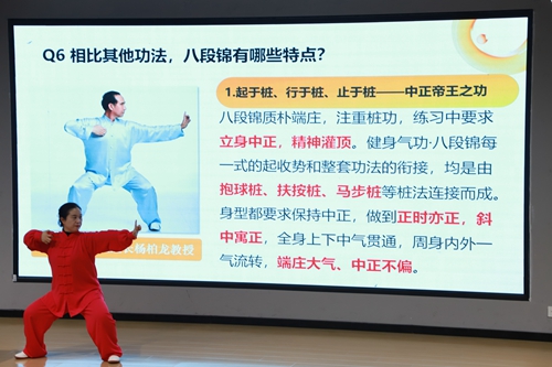 本次讲座兼具文化深度与实用价值,不仅让同学们领略到传统导引术的文化魅力,也帮助大家掌握了科学的锻炼方法。活动在推动八段锦传播的同时,也为同学们在校园生活中寻得一条身心调养之道,使中华养生智慧真正融入日常实践。