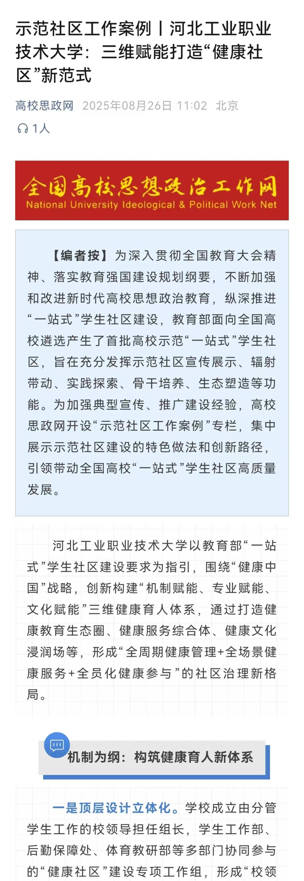 此外,作为教育部首批全国高校示范“一站式”学生社区,乐玩在线建设成果《乐玩在线:三维赋能打造“健康社区”新范式》日前获全国高校思想政治工作网专题报道,成为全国高校示范社区特色文化建设和服务育人工作的典型案例。